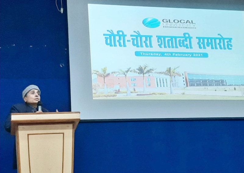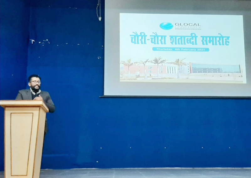 On Thursday 04, 2021, Glocal University gathered for Chauri Chaura Centenary Celebrations. The event started with a small movie clipping and an introductory speech by Prof. Shekhar Choudhary , followed by an address by Vice- Chancellor, Dr. Satish Sharma.On this occasion Prof. Vir Narayan also shared his views and also expressed it in the form of a poem. Prof. Satish Sharma then appointed & announced a Nodal Officer (Dr. Vipin Kumar, Associate Professor , Glocal School of Business & Commerce) for one year for taking forward the activities under Chauri Chaura Centenary Celebrations on the Campus . Dr. Vipin shared his plan to execute the activities and asked students and faculty to actively contribute. At last Pro-Vice ?Chancellor, Dr. N. K.Gupta gave a vote of thanks and the event ended with two minutes silence and national anthem.