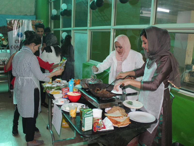 Students participated with full zeal and enthusiasm as they doled out nutritious yet delectable delicacies selected post exhaustive research on the cultural backgrounds of the relevant recipes chosen from the allotted country to each of the eight teams. Artifacts and food items displayed were a visual treat and were presented in an artistic and aesthetic style. Dishes were judged on nutrition and taste by esteemed judges Mr. Sahfiullah Anis, Ms. Sameera, Ms. Swarnima, Mr. Yasir, Mr. Mhd Waseem, and Ms. Isha Talwar. They interacted with the budding chefs to find out the ingredients of the recipes, nutritional value, and the historical significance of the dishes prepared by them. Judges were overawed by the efforts of the participants.