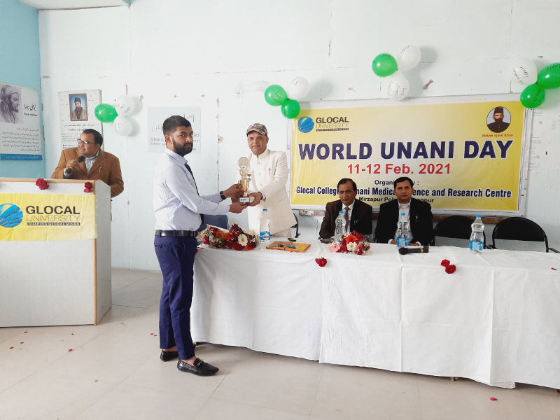 On Friday, 12 February, the two-day program of the birthday (11 February 1868) of Hakim Ajmal Khan in the premises of Glocal Unani Medical College, Mirzapur Pole Saharanpur, affiliated to Glocal University, the Principal Professor of the college ('Unani Day') It was celebrated with great fervor under the leadership of Dr. Abdul Malik Saheb.
