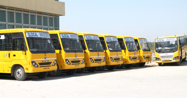 Glocal University is nestled in the foothills of Shivalik range, and well connected by roads from three major cities. In the north, it is connected with Paonta Sahib (HP) which is further linked to Jagadhari and Chandigarh by roads; towards north it is connected to Saharanpur (UP) which has a major railway station while towards the east it is connected to Dehradun (UK), the state capital of Uttarakhand. Glocal University provides transport facility to its day scholars on nominal charges through its self- owned comfortable buses. The buses ply on different routes of the Saharanpur to pick and drop the students from various areas. The students are spared the difficulty of commuting to the University by public transport. This also contributes to inculcating an element of punctuality among the students. Keeping in mind the fact that University is situated in a remote place away from modern amenities,the university provides bus facility to every weakened to its students and staff to visit Dehradun, Saharanpur or Ponta Sahib.